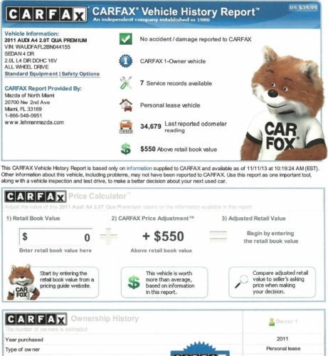 2011 A4 Quattro Premium Sport Pkg Carfax Certified One Florida Owner Super Clean on 2040-cars