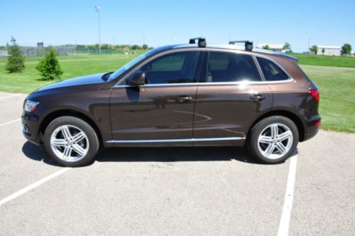This is our one owner Very Loaded 2013 Q5. It's rare beautiful Teak Brown (Not the same ole' black, silver, or gray you see everywhere), with two tone Beige/Brown interior, and has almost 22,000 miles. It is in excellent condition (No dings, No Dents, No Scratches), with a clean Car Fax, and No accidents. We are Non-Smokers.