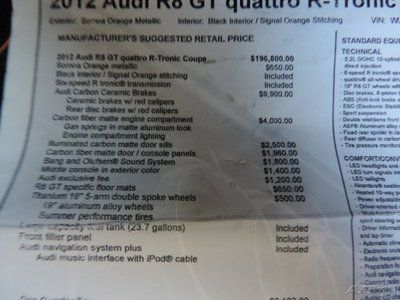 2012 audi r8 5.2 quattro v!0 coupe automatic 2-door coupe(US $147,995.00)
