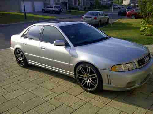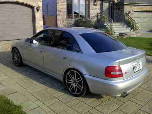 Notes: No accident and maintained A1. Car is a 2000 model (originally “A-Box”) but has 2001.5 manifolds, 2001.5 “M-Box” Software, and 2001.5 S4 Logos. Owner since 2001. Car has been repainted for rust control however there is a slight silver tone difference (almost not perceivable) between front and side. LCD Dash is missing pixels as almost all 10-year Audi B5 S4, side mirrors won’t defrost anymore and rear window defroster is working but slower than a new one. Engine takes some oil, like any older engine, but no leak. Steering pump was replaced in April 2012. New (rebuilt) alternator in September 2012. New (rebuilt) air conditioning unit in April 2012. New Race Stage 3 (6 pucks) clutch in April 2012. Multiple tie-end rods changed in 2011/2012. New Walbro gas pump in 2011. New plugs (x6) and coil packs (x6) in 2012. Coolant thermostat changed in 2009. Hawk HPS brake pads Zimmerman brake discs changed in 2011. New timing belt at 85,000 miles in 2010. There is a keyless remote ignition system but it has been deactivated.