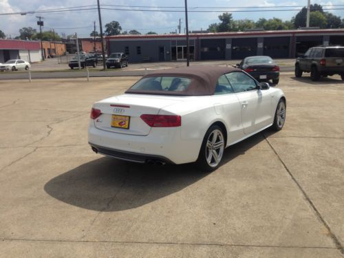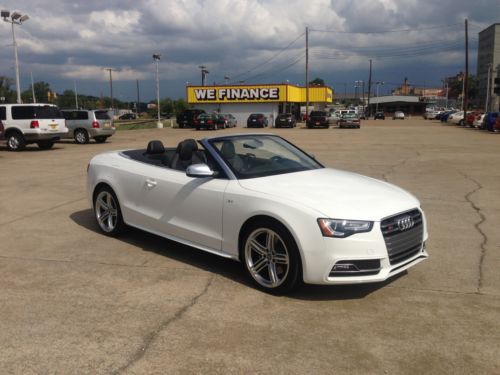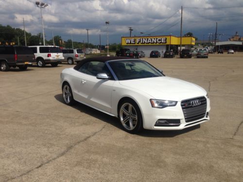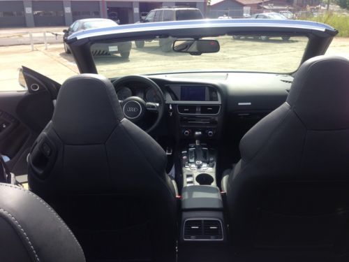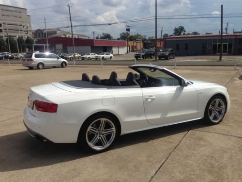 Up for auction is my wife's personal 2014 Audi S5 Prestige Quattro Convertible powered by a 3.0L turbo-charged V6 engine. The miles on this car are 18005 miles. This car has a window sticker of 69975.00 with every option possible including 19 inch wheels. It has Audi MI with Google Earth Navigation thats by the way is extremely cool! Vehicle has a clean clear Carfax and Autocheck. I am the 2nd owner from which I purchased from a local Doctor here in town who decided that he wanted a nice pickup truck again. The car is stunning to look and drive! I am needing something a little larger for my wife so my loss is your gain!!!