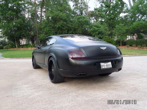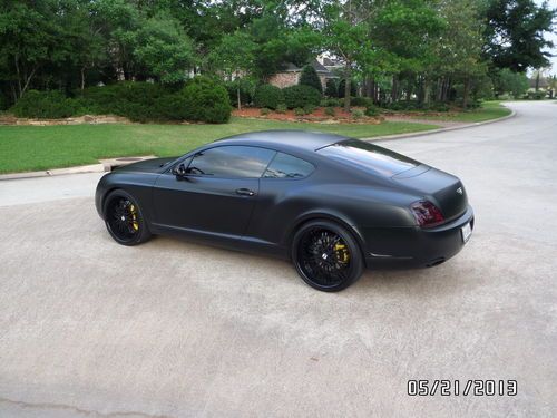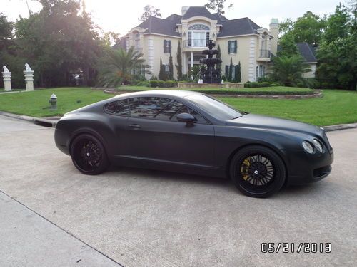 Introducing the 2005 Bentley Continental GT. This 2005 Bentley has been wrapped in a 3M Matte Black material. If you are not familiar with wrapping go to Youtube and search car wraps. This car has absolutely turned heads every single time it leaves the driveway. If you would like to see a commercial this car was featured in go to www.youtube.com and type in " Bentley Continental GT Black Matte" and you will see this car. The Matte black video you see is THE EXACT CAR for sale, the exact wheels/tires/tint. The only thing I did to customize the wheels was had the brake calipers painted yellow to make the wheels stand out from all the black. The car has 32,500 miles and has a 100% clean car fax never been wrecked and never been smoked in. I have a hobby of driving nice cars, I have been doing this since about 2002, I purchase these cars drive them for 6 to 8 months and sell them.. my wife hates it... I purchase all of my cars through Excell Auto Group in Boca Raton Florida who is owned by a very close friend of mine. Please look at all the photos and the video and give me a call to further discuss at 713-705-3454 (Eric). Why am I selling this ? I want a 2010 Bentley Supersports and want to wrap in matte white. Please don't hesitate to call, serious inquires only ... we are all busy or email me eric@pipelineoperators.com