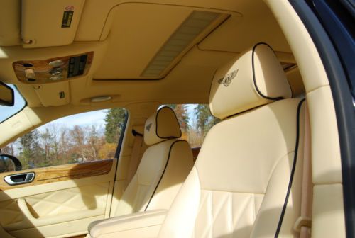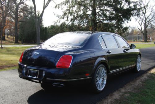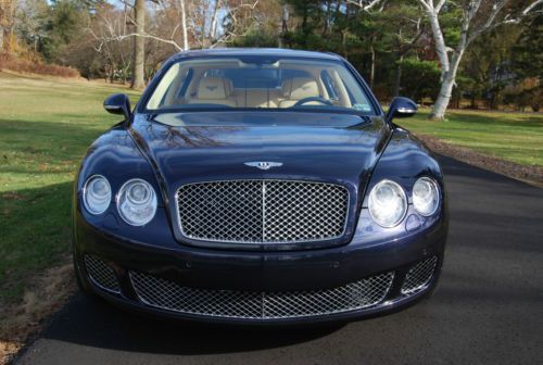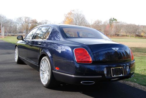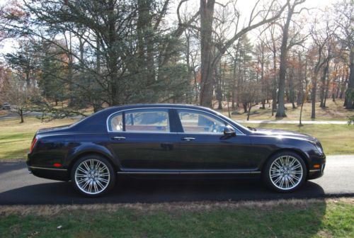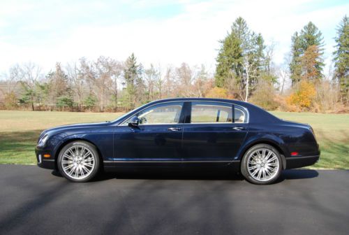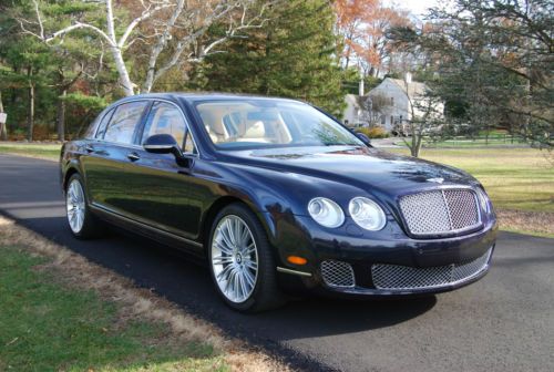 Carriage House Motor Cars is pleased to offer a beautiful and virtually brand new 2011 Bentley Continental Flying Spur Speed for bid. Finished in Dark Sapphire over Magnolia, this car smells, looks and drives like brand new with ONLY 1,621 miles! This car comes complete with all highly crafted standard factory features including the incredible W12 Speed Engine producing 600HP, 6 Speed ZF Automatic Transmission and Continuous All Wheel Drive with Torsen Center Differential. This specially built automobile comes with a dazzling array of factory options including, the NAIM Premium Audio System, Premium Specification (Lambswool Rugs), Olive Ash Veneer, Seat Piping, Rear View Camera, 3-Spoke, Two Tone, Hide Trimmed Steering Wheel. iPod Interface, Cordless Privacy Handset and Valet Key. No marks, no scratches, no dents, no wheel rash and no issues with this car and please call Scott at 203-661-6669 for more information. This car is sold as is and Carriage House Motor Cars reserves the right to cancel this auction at any time. What timing for a wonderful car like this to come along for the holidays and at a fantastic price!