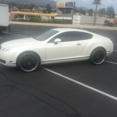 HI THERE I HAVE A 2006 BENTLEY CONTINENTAL GT FOR SALE. THIS BENTLEY WAS PURCHASED FROM AN INSURANCE COMPANY WITH A CLEAN AND CLEAR TITLE. CAR IS FULLY WRAPPED WITH A 3M SATIN PEARL WHITE($6000 VALUE). IT HAS BLACK LEATHER INTERIOR. IT HAS 71936 ORIGINAL MILES. THE COUPE SPORTS SOME NEW 22INCH BLACK AND CHROME RIMS($4000 VALUE).EVERYTHING WORKS ON THIS CAR AND IS FULLY FUNCTIONAL.ALL YOU NEED IS TO PUT SOME TIRE PRESSURE SENSORS. THERE IS ALSO TWO SMALL HOLES ON THE DOOR PANELS THAT ARE EASILY FIXABLE. THIS IS A GREAT CAR FOR THE FRACTION OF THE PRICE. BID WITH CONFIDENCE AND YOU WILL NOT BE DISAPPOINTED. CALL MIKE AT 818-970-5661 FOR ADDITIONAL INFO |