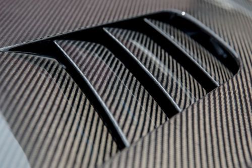 a Brembo brake kit. Under the vented carbon fiber hood sits the heart of this