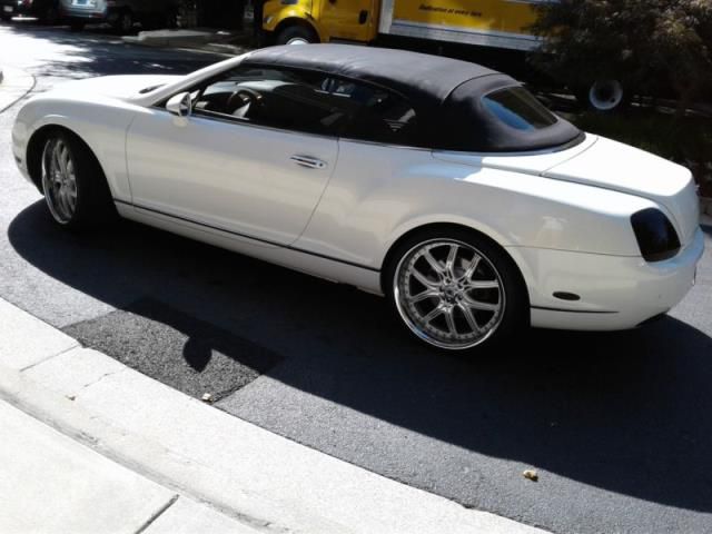2007 BENTLEY CONTINENTAL GTC PEARL WHITE, WITH BLUE LEATHER INTERIOR. NAVY BLUE TOP, 24,931 MILES. 1- 0WNER. WELL MAINTAINED. NO ACCIDENTS. NON SMOKER. CAR WAS REPAINTED PEARL WHITE. PAINT WAS DONE IN CALIFORNIA BY A A1 BODY SHOP. CELEBRITY OWNED. 22 ASHANTI CHROME AND WHITE WHEELS WITH GOOD TIRES. IN PRISTINE CONDITION. 1 RIM HAS A FEW SCUFFS AS SEEN IN PICS. CLEAN TITLE IN HAND.