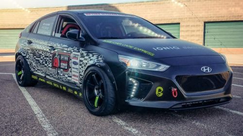 Wed, Sep 12 2018 While we've seen plenty of high-performance electric cars, such as Rimac's supercars and Tesla's powerful sedans and crossovers, we haven't seen many modified electric cars. Or at least electric cars modified for more performance in the traditional sense of the word for more speed and handling prowess. Engineers at Hyundai are finally giving us a peak at the future of tuning and hot rodding with their upgraded 2017 Hyundai Ioniq Electric that's competing in the Optima Ultimate Street Car series this year.It's visually much more striking than the average Ioniq thanks in part to a bold color scheme, but also bolt-on fender flares and Volk TE37SL wheels wrapped in fat 275-mm width tires. More important, there are major changes under the skin. The standard Ioniq Electric's 118-horsepower, 218 pound-foot motor has been swapped out for the new Kona Electric's motor, which makes 201 horsepower and 291 pound-feet of torque. Though that's less power than the Veloster N that's also been racing this year, it's more torque than the same hot hatch.