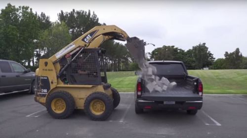 Sun, Jun 12 2016 In the test of pickup truck beds, if steel is apples and aluminum is oranges, Honda wants you to know that composites are pineapples. Chevy recently performed a test in which its own Silverado was pitted against its most obvious competitor, the Ford F-150. A loader dropped over 800 pounds of landscaping blocks into the two truck beds, and Ford's aluminum bed ended up with more damage than Chevy's steel bed. Check that test out right here.Honda apparently wasn't content to let Chevy throw stones alone. In a new test, the Japanese automaker replicated the block-drop test using its brand-new Ridgeline truck, which features a composite bed. As you'll see in the video above, there was very little damage to the high-strength plastic bed of the Ridgeline after a similar load of landscaping blocks were dropped from a loader.