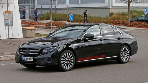 Fri, Nov 13 2015 With these spy shots of the 2017 Mercedes-Benz E-Class we can see the circle is nearly complete: once it arrives, Mercedes will sell the same car in three different lengths. To quote our spy photographers, "The new E-Class is a smaller S-Class. Of if you rather like it the other way around, a bigger C-Class."The E-Class makes its debut at the 2016 North American International Auto Show in Detroit in a couple of months. Being the latest reveal it will also bringing a thick folio of Daimler's technology with it, such as Vehicle-to-X communication, remote control parking via a smartphone app, adaptive cruise control that sets the speed based on road signs, an air bladder that pushes front-seat occupants towards the center of the car before a side impact, an audio system that triggers your eardrum's reflexes to prevent hearing damage in a crash, and NFC-based unlock and vehicle start using your smartphone. For starters. Good luck picking it out from its stablemates, though. The video below captures the car in motion.