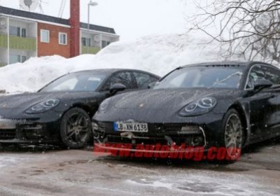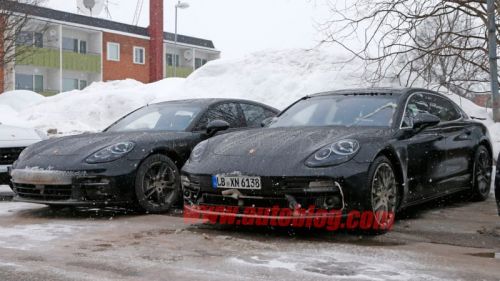 Mon, Mar 14 2016 One of these days, Porsche is going to introduce the 2017 Panamera. That day is not today, though, so we've got yet another round of spy photos showing the new sedan undergoing winter testing.This is easily the closest we've seen to a production body on the new Panamera – it's completely free of camouflage aside from the unconvincing stickers over the headlights and taillights. They're not very good, though. We can see the taillights will adopt a similar look to the new 911 – they'll be slim LEDs that occupy a lot less space than on the current car.