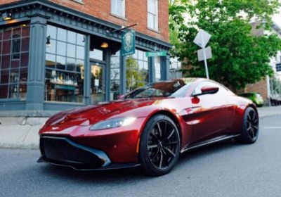 My road-tripping Vantage is bathed in a special coat of wine-red “Diavola” paint, 20-inch gloss-black forged wheels (each priced at $5,860) and other goodies that lift a $156,081 base price to a heady $192,599.