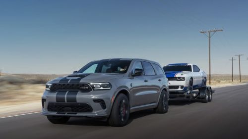 From a styling standpoint, the Hellcat stands out from its brethren without looking too ostentatious. ThereÂ’s a new front fascia (deleted the fog lamps for more airflow), chin splitter, larger rear spoiler (that produces 400% more downforce than before) and Hellcat badges all around. The interior and the rest of the Durango lineup has been updated for this year, but you can read about all of those details in our dedicated standard Durango post. Unique to the Hellcat are red gauges, heated/ventilated leather seats with suede inserts, and Hellcat logo-embossed seat backs. It'll still tow just as much as other Durango's, as the Hellcat is rated to pull 8,700 pounds.