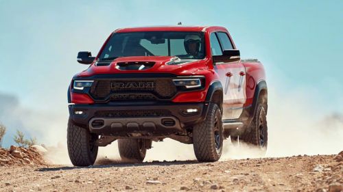 Of course, four-wheel drive is standard. Ram equips the TRX with a new BorgWarner 48-13 transfer case that features upgraded internals for better durability and performance. This truck is designed for high-speed running, but it also features a low range of 2.64:1 for rock crawling. However, the Power Wagon is likely your better option for low-speed off-roading. The TRX has a locking rear differential, but the Power Wagon has locking front and rear differentials, plus an electronically disconnecting sway bar.
