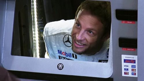 Thu, Dec 25 2014 We all know the drill: you need cash, you go to an ATM, you push some buttons and out come the bills, deducted from your checking account. But some customers at European bank Santander got a bit of a surprise when they were asked to use a new type of automatic teller and push the Jenson Button.Putting the Santa in Santander, the 2009 Formula One World Champion hid inside an ATM in England and dispersed gifts from the bank to a fortunate few of its customers. It's a good gag, one that puts the bank in good light and spreads a bit of holiday cheer.