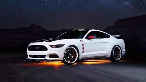 Wed, Jul 15 2015 By putting a man on the moon, the Apollo Program stands as one of the greatest engineering achievements in human history. Ford is paying tribute to that massive triumph with the company's latest one-off Mustang for the charity auction at EAA AirVenure in Oshkosh, WI, on July 23. This Apollo Edition 'Stang is probably never leaving Earth's atmosphere, but it's going to shoot like a rocket down the road.The Apollo Edition starts as a 2015 Mustang GT, but project manager Melvin Betancourt from Ford Design comprehensively overhauls the pony car. The exterior is finished in a handsome mix of black and white, and the coupe also shows off some serious patriotism with the Stars and Stripes adorning the outside. In an especially clever touch, orange LEDs underneath are meant to make the bottom look like its heating up under re-entry. Inside, the leather upholstery gets upgraded with embroidery inspired by the Apollo Program.