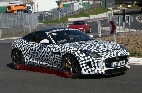 Fri, 23 Aug 2013It's no secret that Jaguar is working on a fixed-roof version of the F-Type roadster, but now it looks like it's also developing a high-performance model for said coupe. Captured sharpening its claws at the Nürburgring, this F-Type Coupe prototype could very well be an R-S or even a more track-ready R-S GT variant.