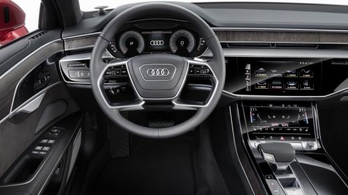 If all of those key circumstances are met, Audi's artificial intelligence system can be activated using the AI button on the center console. Audi will accept all legal responsibility when the car is driving itself. Starting, steering, acceleration, and braking are all taken over by the car, and the driver is free to perform other tasks. Theoretically, at least, because nobody outside of Audi has actually given the AI tech a spin.