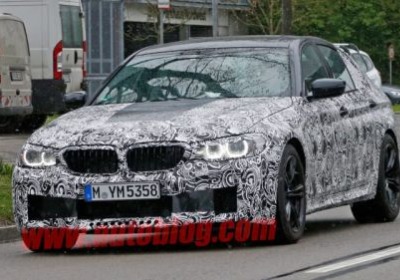Tue, Apr 26 2016 The facelifted BMW M5's striptease continues. The latest spy images of the super sedan show even more headlight and taillight details, on top of more overt signs of this car's character. Our first spy photos of the M5 showed a car with production 5 Series wheels and tiny quad exhaust pipes. The next set got sportier black wheels. But the latest shots depict a machine that gets the current M5 Competition Package's black wheels along with BMW M's trademark blue calipers, just like the current car. It also ditches the camouflage on the pillars, roof rails, and rear windows.Beyond those changes, stripping away some of the camouflage has shown modest tweaks. We're finally getting a good look at the updated, squared-off LED running lamps and the tweaked front fascia. Updates are even more minor in back. But there may be something more drastic at play with the taillights. Studying these shots, we can't really see any detailing in the rear lamps. There's a similar thing going on between the normal LEDs on the BMW M4 and the OLED units in the new M4 GTS. Backing up this speculation is a single shot of one of the rear turn signals illuminated. It doesn't look quite like the current car's signal, but we can't be certain.