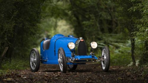 In building the Baby II, Bugatti tried to replicate as much as it possibly could to bring the Type 35's essence back to life. Some of the coolest features include a hollow front axle, eight-spoke wheels (which now have Michelin tires), the four-spoke steering wheel, a turned aluminum dashboard with a clock "used for measuring race performance," and a digital recreation of the fuel pressure gauge. Although French Racing Blue was used for the prototype, Bugatti says the Baby II can be painted in modern colors from the Chiron range or from vintage colors that are tied to specific racers or events from the company's history.