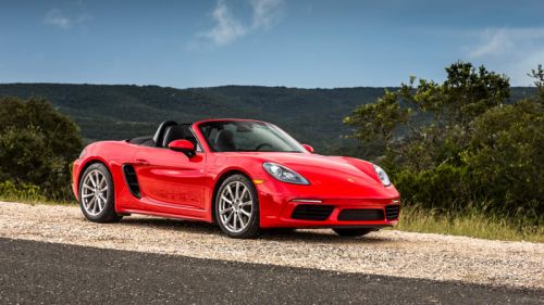 Which brings us to the 2017 Porsche 718 Boxster that is the real reason we're in Austin. It's the latest version of the brand's 20-year-old mid-engine roadster, now featuring a numbered middle name borrowed from one of those pretty classic Porsches from the late 1950s and early '60s. Tucked just behind the cockpit, slung ever-so-low in the revised chassis is one of two turbocharged four-cylinder engines – a 2.0-liter in the base Boxster and a 2.5-liter in the S. In a move to improve fuel economy, these engines replace the old 2.7- and 3.4-liter naturally aspirated flat-six engines previously found in the Boxster and its Cayman coupe sibling, which receives the same updates and 718 name for 2017.