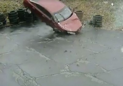 Wed, Feb 1 2017 A motorist lost control of their car on a Pittsburgh freeway yesterday and, after hitting a curb, flew off the freeway and crashed into the parking lot of a local auto shop.According to KDKA, an unidentified motorist was driving along Parkway West in a Kia Optima just after noon on January 30 when they missed a sharp turn near the Campbell Road exit. The Kia hit the curb, flew into the air, smashed through Snyder Brothers' Automotive's sign, and landed nose-first in the repair shop's parking lot.
