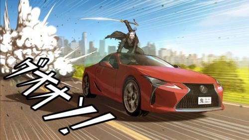 Thu, Jun 6 2019 Lexus just did something a bit different, and it has to do with manga art. The headliner piece is the Lexus LC 500 with the masked warrior crouching on top of it, seen above. We think it's objectively awesome, as the car autonomously races away from an exploding city.The LC 500 was drawn by Bulgarian artist Daniel Atanasov. He says it's "heavily influenced by Japanese culture. The main character is wearing an oni mask, which in Japan are worn at festivals to protect from evil spirits. He is holding a nodachi sword (a type of Samurai sword), and the pose of the character has been influenced by martial arts." Atanasov says the LC 500 is self-driving, controlled by the character on top of the car.