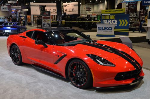 The Corvette Pacific concept (shown above) starts with the performance-oriented Z51 package and shows off the more custom look of West Coast car designs with its Torch Red paint contrasted with black rocker extensions and a front splitter. Perhaps the coolest part of this car's visual tweaks are its black aluminum wheels with red accent stripes.