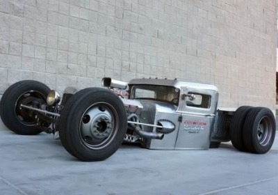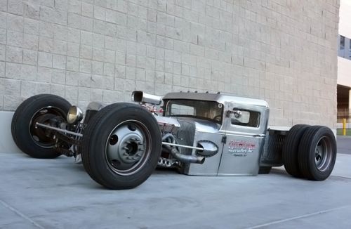 Aluminum Dually is hand crafted with fabrication that "breaks the rules in design with loads of attitude", says lead fabricator and president of Cutworm Specialties, Jeb Greenstone. It took six months to build the all-aluminum body and bed. The design is based on the 1930-31 Ford Model A trucks. Although the rear axle and 19.5" wheels are parts from a motor home, the suspension, spindles, axles and lug nuts were built from scratch by Cutworm. Built to make the street proud and on-lookers jealous, the Aluminum Dually contains a 1967 Lincoln 460 V8 engine with a transmission that can reach 575-600 horsepower.