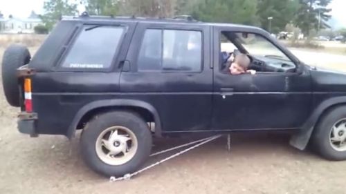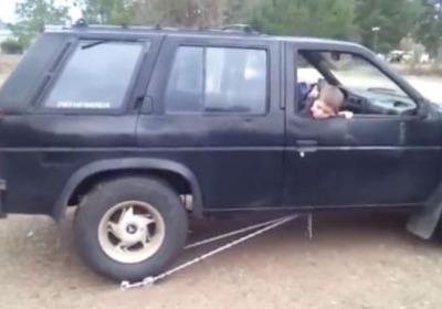 Mon, Feb 9 2015 Sometimes in life money gets tight, and the funds just aren't there to make a repair on your vehicle. What proves someone's mettle is how that person deals with it, and this guy deserves a medal for his ingenuity.According to the YouTube description, the man's Nissan Pathfinder lost reverse gear, and this system of chains and rollers has been his fix until he can really get it repaired. Trying this stunt in a crowded parking lot could get a little scary, but for leaving home, this might be all you would need.