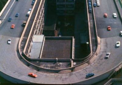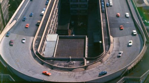 The test track that made Lingotto famous wasn't merely a gimmick: it was an important part of the production process for several decades. Raw materials entered the building on the ground floor and cars made their way through several stations scattered across the five floors before ending up (in one piece) on the roof. They were then driven for about half a mile before being sent out of the complex. This sped up the production process because road testers could put new cars through their paces without having to leave Turin, and it allowed Fiat to test prototypes without worrying about getting spotted by spy photographers. The track was also featured in the 1969 movie The Italian Job.