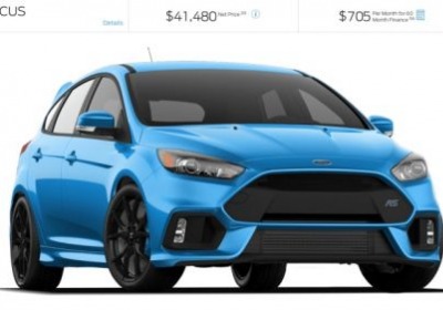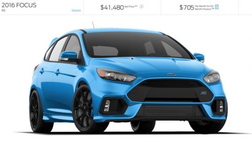 Thu, Sep 17 2015 Ford made waves yesterday when it drooped the performance and pricing details on the new Focus RS. Perhaps keen to keep the momentum going, the Blue Oval has launched the configurator for its new fire-breathing hot hatchback.As configurators go, this is a lot like the Ford's other build-your-own tools, only it's even more limited. The total list of options on the new Focus RS is quite light. You can pick from one of four colors, including the stylish Nitro Blue shown above, while there are just two interior upholstery schemes – partial black leather and full black leather for the standard Recaro seats.
