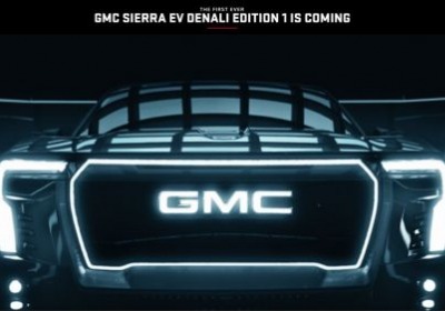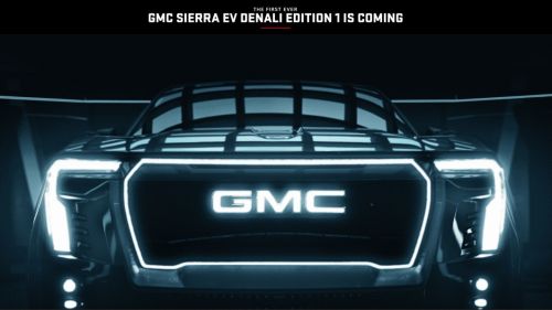 Wed, Oct 19 2022GMC says its Sierra EV Denali Edition 1 battery-electric pickup is "Built to tower above everything you thought an electric truck could be. That’s why itÂ’s the only EV that deserves the name Denali." We will know what the marketing speak means tomorrow (Thursday), when GM's third electric pickup in a year debuts at 5 p.m. Eastern. GMC teased the face of the Ultium-powered Sierra Denali nearly a year ago with an animated rendering. This second teaser on the eve of the debut gives us a better feel for what to expect. The front fascia advertises the product with illuminated GMC lettering at the center of a grille panel defined by an illuminated border. Upside down L-shaped LED lights frame three LED charging status bars. Below those at the bumper edges are what look like four fog lights, two round units above two squared oval units.