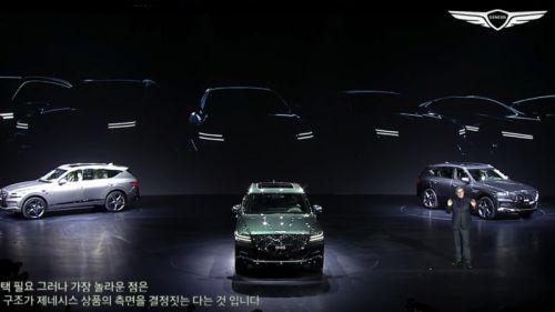 Wed, Jan 15 2020Genesis teased the future of its product portfolio with some prominently placed silhouettes during the debut of its new GV80 crossover. The teasers, which appeared in the background of the design portion of the presentation, appeared to depict both a family of new Genesis vehicles and a few individual future models, one of which appears to be a coupe.