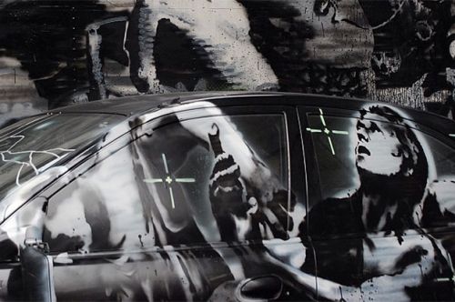 Graffiti artist Banksy turns Mazda Protege into warfare commentary