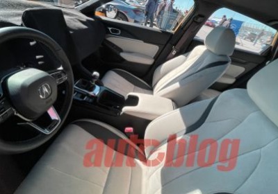 The seats look like Acura's latest seat style as opposed to Civic Si seats, and they even feature a neat two-tone black and white design. What does appear to be a direct Civic rip is the steering wheel, which gains an Acura badge and what looks like the rough outline of an A-Spec badge for Integra duty. We'll note that this likely means that the Integra will be offered in A-Spec trim, just like every other new Acura on sale today. The original Integra was never sold as an A-Spec in the U.S., but the RSX Type S (named Integra outside the U.S.) was available in A-Spec trim.