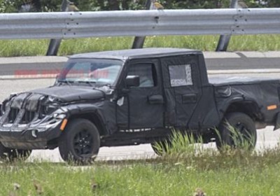 Jeep Wrangler Scrambler pickup truck spy shots reveal top and lighting details