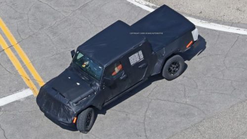 The rest of the truck is rather well covered, so there aren't many more details to glean from the photos. There is a very large rear window, which should be good for visibility. Even though the roof is covered, we expect a removable roof of some sort is hiding underneath, since the previous prototype had removable panels like those on the current Wrangler Unlimited. We also expect a turbocharged four-cylinder and a naturally aspirated V6 to be offered as engines on this and other new Wranglers, as well as the possibility of a diesel of some sort. As for when we'll see the Wrangler pickup, we would expect a reveal in early- to mid-2019, with trucks appearing on lots in very late 2019 or early 2020. This is based on a report from The Detroit News that says production will begin in 2019.