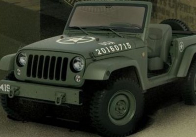Based on of the current Wrangler Sport, the olive-drab Wrangler 75th Salute concept imitates the original Willys MB to the tee. The concept has no B-pillars, no doors, no roll bars and honors the "function over form" styling of the original military vehicle. The concept rides on 16-inch steel wheels that are wrapped in 32-inch non-directional tires and features vintage-looking hood latches, steel front and rear bumpers with tow hooks, and low back canvas seats.