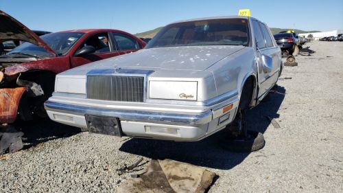 Sun, Feb 27 2022The hallowed American tradition of the cushy, softly-sprung sedan with padded vinyl landau roof and puffy upholstery had its heyday in the 1960s and 1970s, but you could buy such cars well into the 1990s. Even after Lee Iacocca's modern front-wheel-drive K-Cars appeared in the early 1980s, "traditional" Detroit luxury cars based on the K platform continued to be built by Chrysler for quite a while. A great example of this is the 1983 to 1993 Chrysler New Yorker, which managed to mix up the philosophical concepts behind the plush-yet-affordable 1970 Chrysler Newport with the space-efficient, lightweight Iacocca Era in one machine. I found one of these, a 1990 New Yorker Mark Cross Edition in a Northern California yard, and I wish to share its resplendence with you as today's Junkyard Gem.