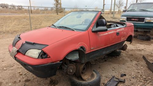 Sat, May 14 2022Americans lost the ability to buy a new Detroit-made convertible starting in the 1977 model year (unless you count aftermarket conversions), not regaining it until drop-top Chrysler K-Cars showed up in showrooms in 1981. This gave convertibles a certain magical quality that lasted for quite a while here, and so it seemed to make sense for GM to offer an open-air version of the Geo Metro. Here's one of those cars, spotted in a self-service yard in northeastern Colorado.