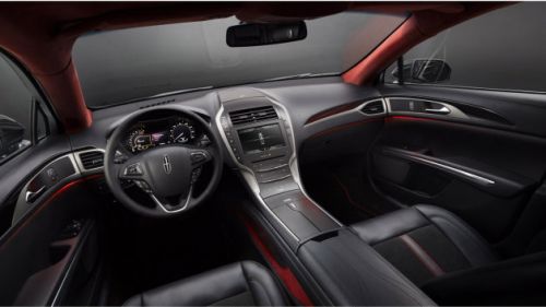 The Center Stage treatment (seen at the top) is the most dramatic by a long ways, matching an unmissable Foxfire Red headliner and red accents with an otherwise blacked out interior. Perforated Alcantara inserts for the seats and door offer an interesting material pattern, too. The Indulgence car seems aimed at the widest band of Lincoln shoppers, with layered brown tones ("Ganache" and "Truffle") and a cool, undyed, natural grain wood called Ziricote. Modern Heritage meanwhile, seen on both the MKZ and the hot MKC Concept, offers an ultra-high-contrast white and black treatment with metal flake-imbued wood trim. That's bling special, to be sure.