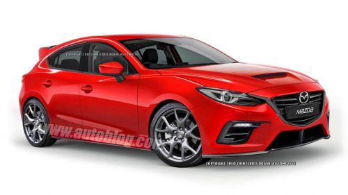 Rumors last year suggested that Mazda might introduce a new Mazdaspeed3 (speculative rendering above) as a concept at the 2015 Frankfurt Motor Show. It would have reportedly used the CX-9's 2.5-liter turbocharged four-cylinder tuned to 295 horsepower and an all-wheel-drive powertrain. The vehicle never appeared, though.