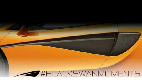 Mon, Mar 16 2015 If you think major automakers like Volkswagen and General Motors have been making the most of their technologies, just look at McLaren. The British supercar constructor developed a carbon-monocoque chassis, 3.8-liter twin-turbo V8 and seven-speed dual-clutch transmission for the MP4-12C with which it launched in 2011, and has used those basic building blocks as the backbone for everything it's done since. Next up will be the new Sports Series, and what we're looking at here is our first glimpse at a completely undisguised body panel for that new model line.Granted there's not a whole lot to see from the teaser images above, but it does show us a substantial section of the vehicle's flank. Central to its profile is the side intake, which to our eye would seem to pay homage to its earlier logo – a streamline form of its original kiwi bird mascot – it used throughout the 1970s, much as the headlamps and other elements on the 650S and P1 take their inspiration from the company's current boomerang-shaped logo. The carbon accent flows from the front wheel well into the airtake aft of the door.