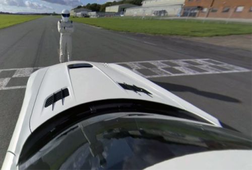 A 360-degree, high-definition camera has been rigged up atop the gullwing SLS, allowing viewers to choose from an infinite array of viewing angles, all while The Stig does what he/she/it does, lapping the track as quickly as possible. It is a very, very cool way of shooting video, and one that you'll absolutely want to check out. Make sure to watch it in HD and then click the Little Planet mode to have your mind blown.