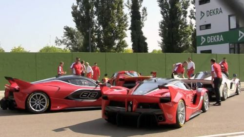 Tue, Jun 9 2015 One Ferrari FXX K is rare. But four FXX Ks in one place is super rare. But even if you are so lucky to see so many of the racers all at once, you aren't likely to see them running Imola together. So yes, you want to watch this, and turn the volume up for good measure.Considering the rarity of these vehicles, not to mention the fact that their owners can only drive them under the careful supervision of Ferrari, we imagine the logistics of getting all these cars together was either very, very easy (since the cars stay with Ferrari at all times, like the first FXX) or remarkably difficult, because of all the personnel and equipment associated with each car in the Client Test program. Either way, bask in this scene, because as we said, we probably won't see it again soon.