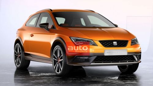 Mon, Sep 14 2015 Seat's big Frankfurt Motor Show debut has been teased/leaked ahead of its official debut. The teasers are, of course, directly from Seat and show the new Leon Cross Sport Concept in a pair of sketches. You can check those out below. The leaked stuff, available up top, is far juicier, though.The shots originally came from AutoForum.cz, Auto Express reports, and look to be stock images of the three-door hatchback. In short, it looks like a Seat Leon, which is to say the MQB-based Spaniard is a more attractive Volkswagen Golf. In concept form, though, this new Leon is something of an anomaly. It wears the steroidal sheetmetal of the high-performance Cupra, especially with the large wheels and prominent quad exhausts, but its boosted ride gives it much more of a soft-roader character. Think of this, then, as a high-riding Golf GTI.