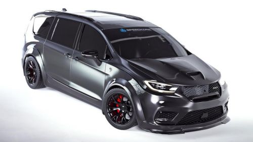 A regular Chrysler Pacifica weighs about 4,530 pounds and makes, at most, 296 horsepower when given hybrid help. SpeedKore's version not only multiplies that figure by more than five, the aerospace-grade carbon fiber body panels that are a shop specialty are claimed to drop 1,000 pounds. They'll do a fine execution of the mission statement, which we're told is "setting lap records, roasting tires, and putting a pep in your step." Anyone who hasn't been too scrambled to step out of the van at its destination, at least.