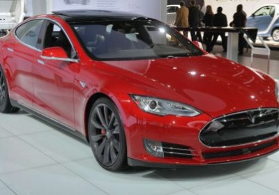 Tesla Model S P85D is a ruby beauty at the 2015 Detroit Auto Show