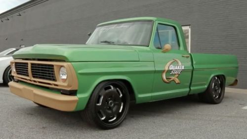 Fri, Jan 30 2015 Something always feels just a little taboo when someone builds a custom and then slots in a powertrain from a rival automaker. That's exactly the case with this modded 1969 Ford F-100 boasting a highly tuned LSA supercharged V8 like from the second-gen Cadillac CTS-V. However, with a claimed 800 horsepower on tap thanks in part to running an estimated 20 pounds of boost, it's easy to get over any bad feelings.Built by Tommy Pike Customs in South Carolina, the truck tries to keep the exterior looking somewhat stock. Although, the jade green and satin gold paint, Quaker State logo, lowered suspension and black wheels immediately suggest something is up. Once the F-100 starts up with its menacing growl, absolutely any doubts of this beast being unaltered are immediately gone. Not so obvious are some tweaks to actually help put all that power down, including disc brakes and independent suspension setups at the front and rear. The video gives some glimpses at a few of Pike's other creations, but the real star here is definitely his mean, green Ford.