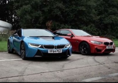 Thu, Mar 24 2016 The BMW M4 and i8 represent two every different expressions of the performance car. The M4 relies on its turbocharged six-cylinder combustion engine to spin the rear wheels. Conversely, the i8 packs a turbo three-cylinder and electric motors for its cutting-edge all-wheel drive system. Top Gear is the latest publication to put the pair together to find out which ethos is quicker.We saw Germany's Auto Bild hold a similar race last year, and the i8 scored a clear victory there. We don't want to spoil the winner of Top Gear's attempt, but we can tease that this sprint ends in a photo finish. Pick your favorite, and then watch the video to see which performance coupe takes the checkered flag.
